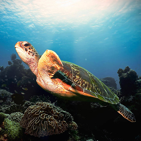 Cocok untuk pemula dan kursus diving, banyak penyu dan terumbu karang datar.