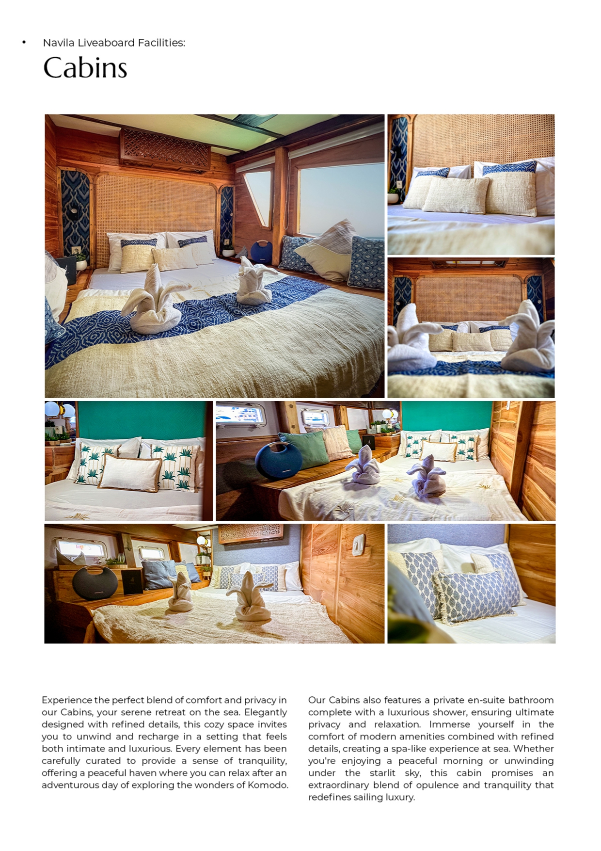 Capacity depends on the Phinisi boat type. Generally, private Phinisi boats accommodate 6–20 guests, with multiple cabin options available.